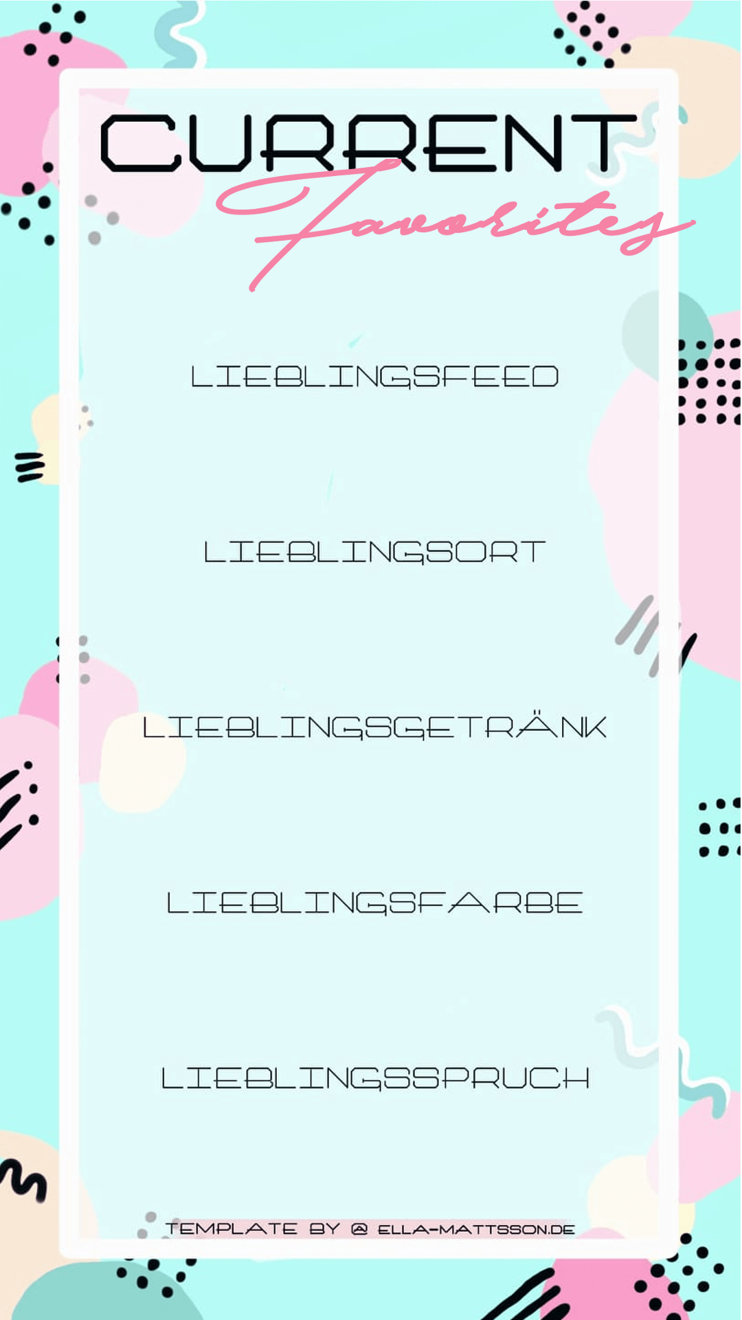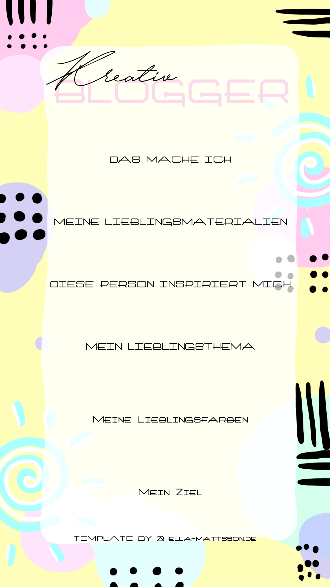 Wenn ihr auf Instagram unterwegs seid, dann habt ihr bestimmt schon mal die Story Funktion benutzt. Ich benutze die Storys zumindest sehr gern für kurze Infos und Videos oder auch für kleine Frage und Antwort Spiele oder Umfragen. Manchmal wird man dann auf so ein Spiel nominiert und das macht immer Freude. Man lernt seine Mitmenschen dadurch ganz gut kennen und ich finde es immer interessant, wie die Menschen auf die Fragen antworten. Doch ich hatte keine Lust mehr auf eine Nominierung für eine Umfrage zu warten und habe kurzerhand meine eigenen free Instagram Story Templates gemalt. Ihr könnt euch die Vorlagen kostenlos herunterladen und in eurer Instagram Storys benutzen. (Natürlich auch für Facebook etc.) Ihr könnt sowohl die beschrifteten Templates nutzen und die Fragen ausfüllen, oder die leeren Templates herunterladen und selbst Fragen einfügen. Die einzige Bedingung ist, dass ihr „Template by @ella-mattsson.de“ nicht aus dem Template entfernt. Ihr müsst mich auch nicht weiter verlinken oder so. Ich freue mich natürlich trotzdem immer über Interaktionen mit euch.