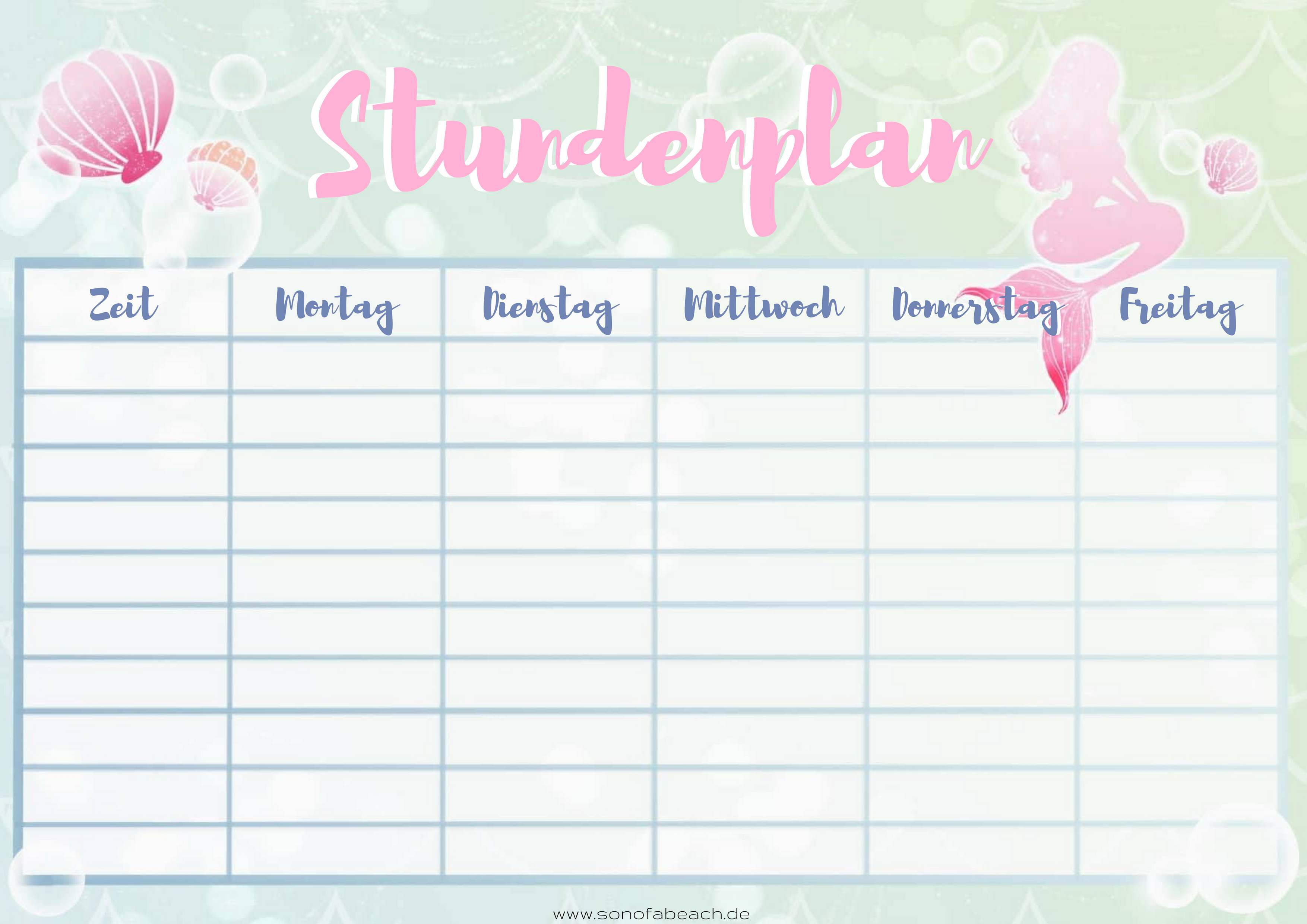 Meerjungfrau Stundenplan – kostenloser Download